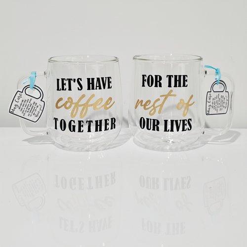 Personalized Double Wall Glass Coffee Mugs - Custom Couple Set